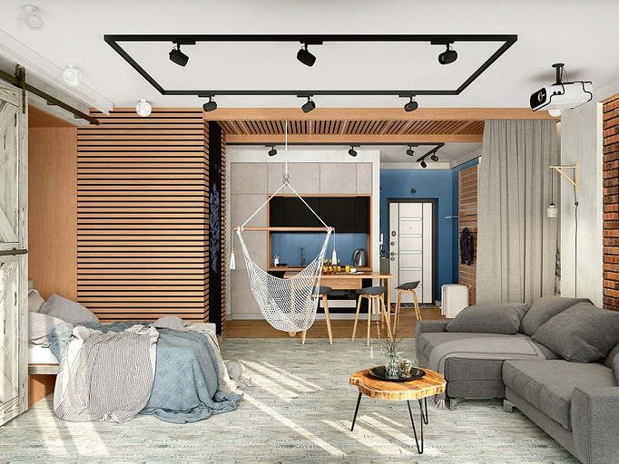 В квартире-студии дизайнерам удалось организовать все необходимые функциональные зоны: кухню со столовой, гостиную, спальню и места хранения для габаритного спортснаряжения. Они использовали мебель-трансформер, а также другие хитрости. Рассказываем о них. Читать далее...