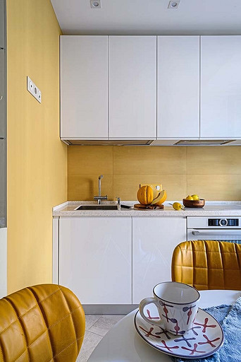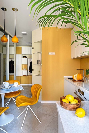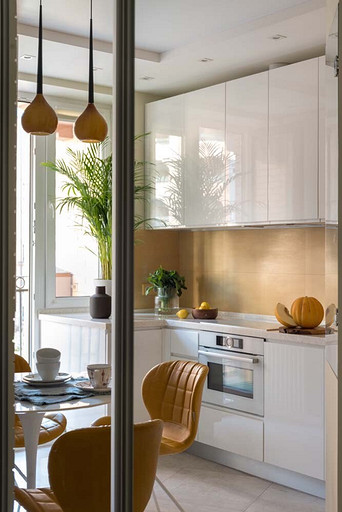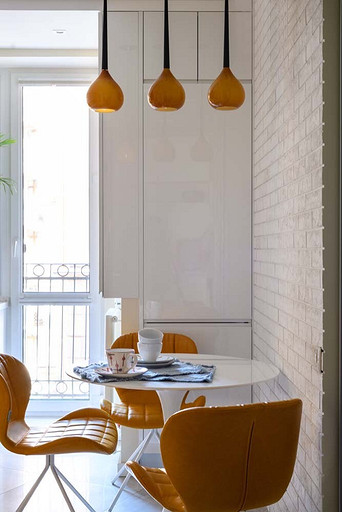 - Мебель: обеденный стол Tulip, стулья Zuiver, кухонный гарнитур «Монтегли»