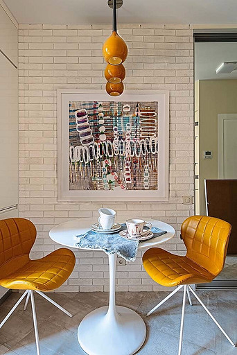 - Стены: краска Benjamin Moore, декоративный кирпич, плитка Atlas Concorde