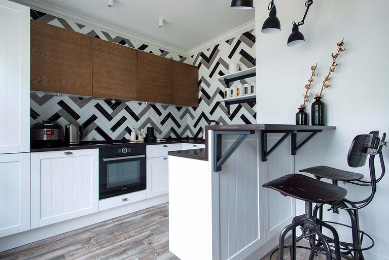 - Стены: краска Flugger, фартук — плитка Self Diamond