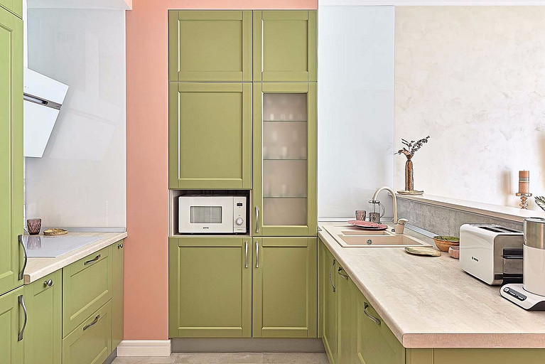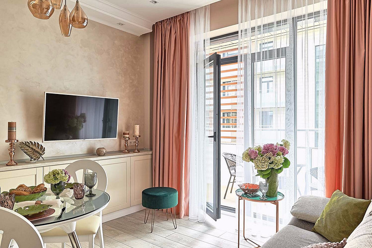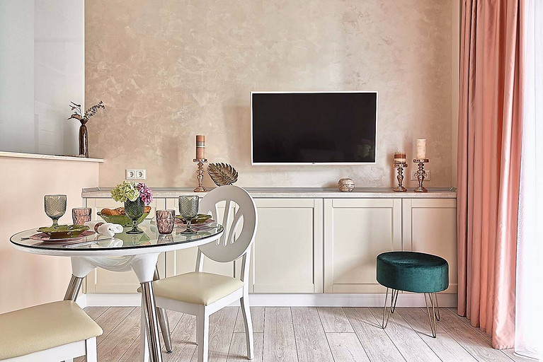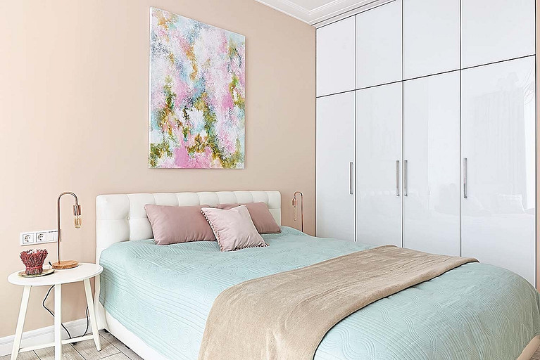 Розовый, зелёный, голубой: квартира у моря в нежной пастельной гамме