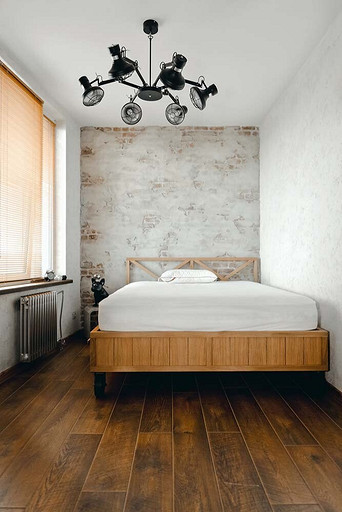 - Мебель: кровать — на заказ по эскизам автора проекта, тумба Kare Design, ТВ Samsung