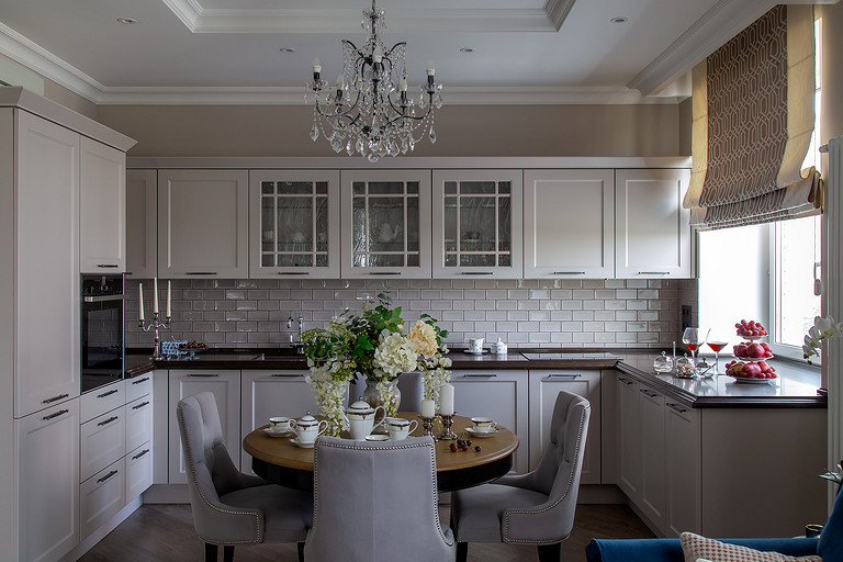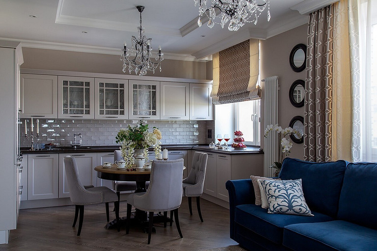 Квартира для большой семьи: современная классика в серо-белой гамме