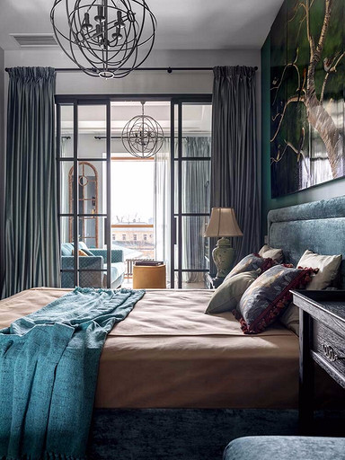 - Светильники: люстра, прикроватная лампа MHLiving, встроенные Ledcentr