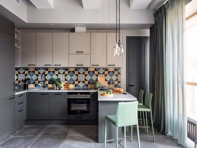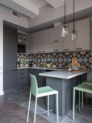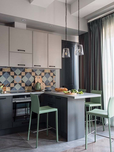 - Мебель: «Кухни Мария», столешница Corian (DuPont), стулья Bontempi