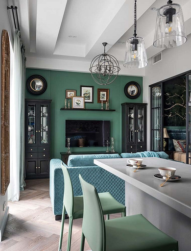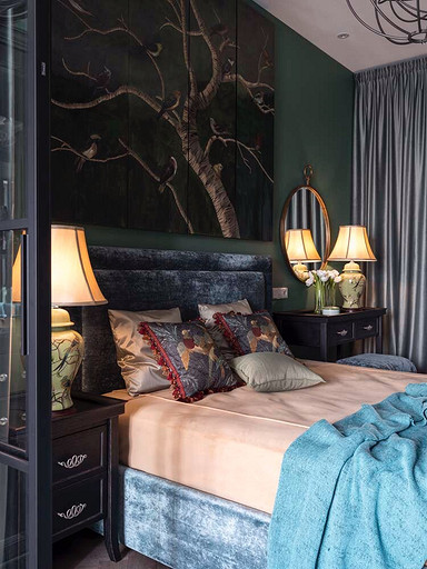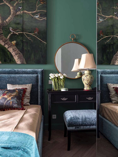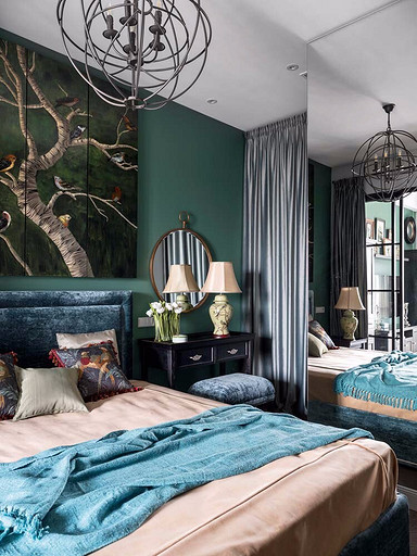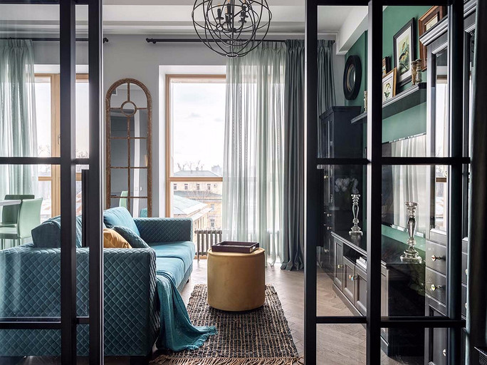 - Аксессуары: зеркала Eichholtz, шторы Lighthоuse, постеры — принт, ковер «Ами Ковры»