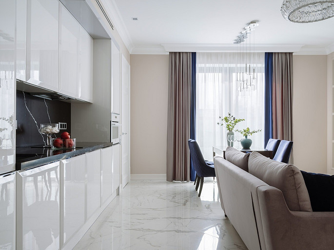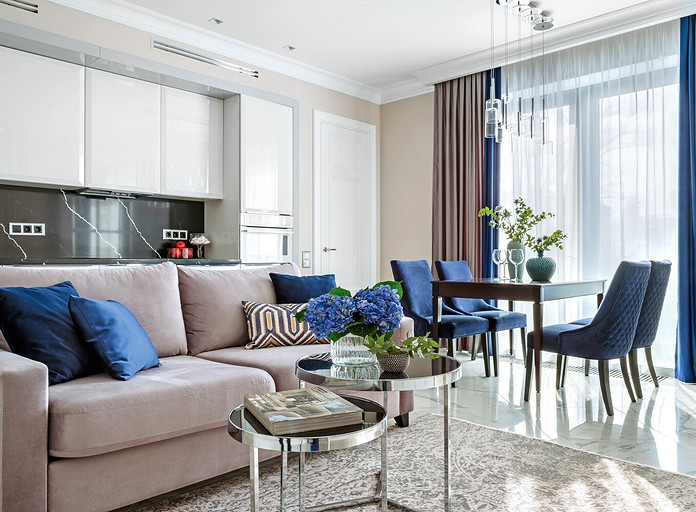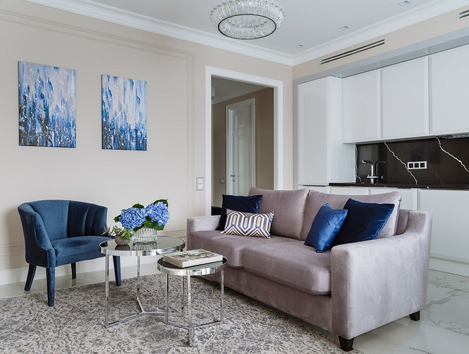 Современная классика в теплых тонах: интерьер двухкомнатных апартаментов в центре Москвы