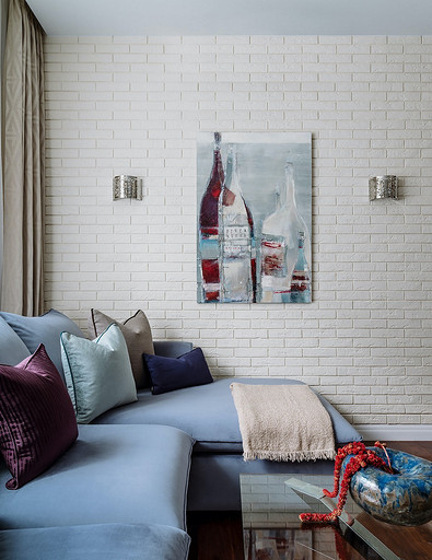 - Мебель: журнальный столик Julia Grup Mikado, диван Vosart, винный шкаф Liebherr, встраиваемая на заказ