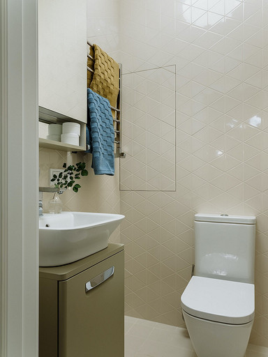 - Оборудование: сантехника Roca Gap, полотенцесушитель «Сунержа»