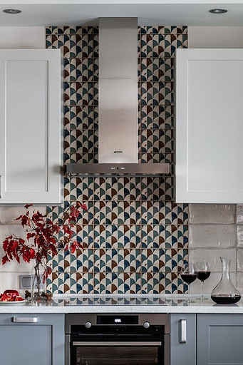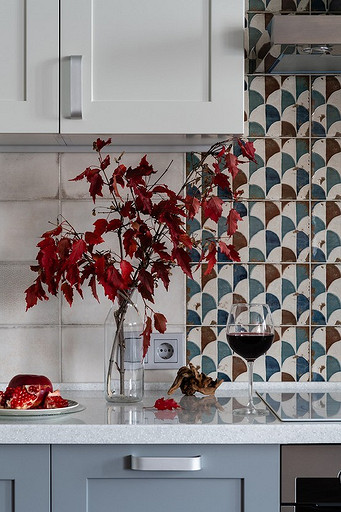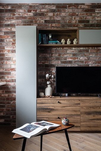 - Стены: инженерная доска Tarwood, керамогранит Ragno Woodcraft Marrone, краска Sherwin Williams, кухонный фартук — плитка (Mainzu Esenzia Gondola), клинкерный кирпич ручной работы Roben Geestbrand, смеситель, раковина Grandfest
