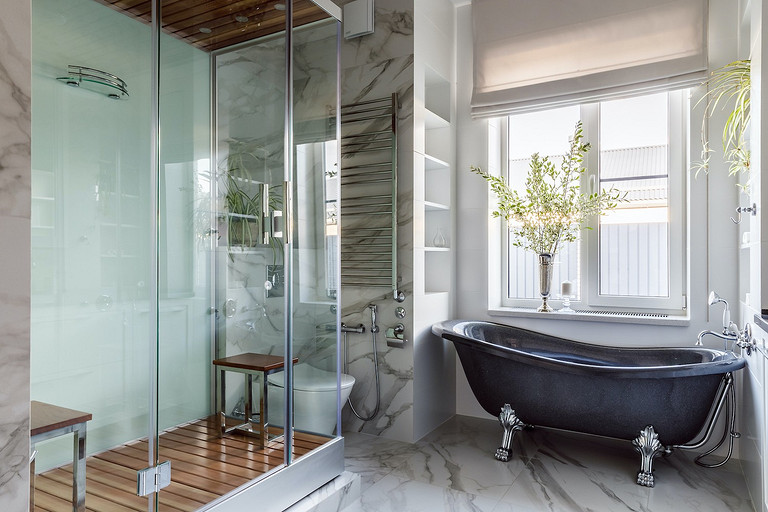 - Пол: керамогранит Travertini