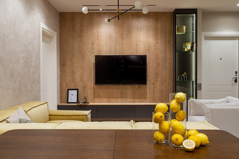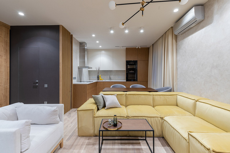 Уютный интерьер с желтыми и синими акцентами: квартира в Санкт-Петербурге для отдыха и работы