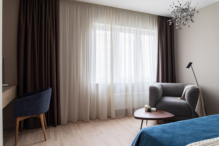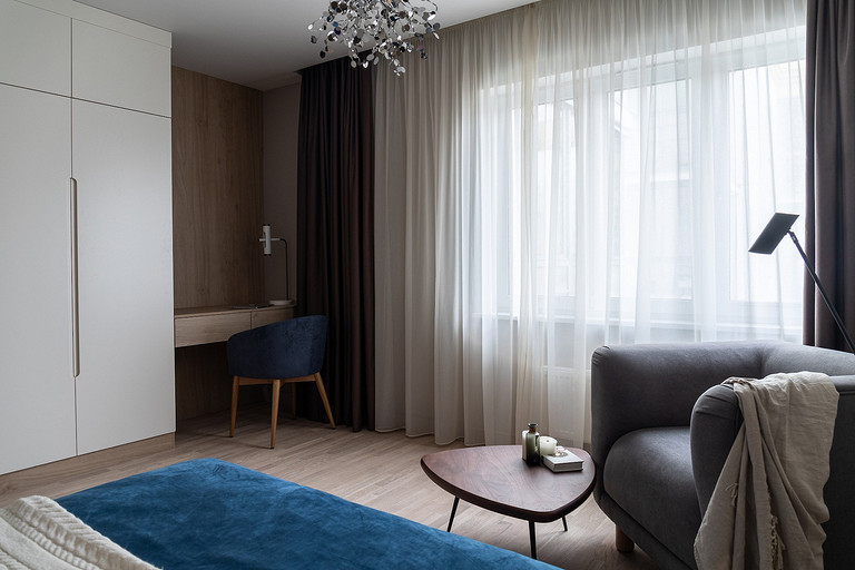 - Мебель: стол, стулья, кресло в спальне — SK Design, журнальный столик в гостиной и спальне — Cosmorelax, кресло в гостиной Mrs. Homes