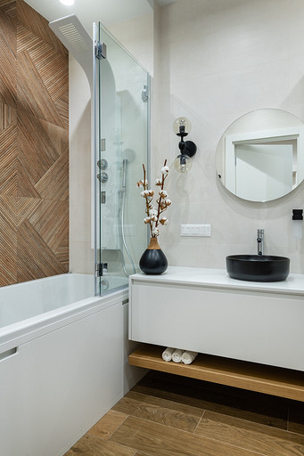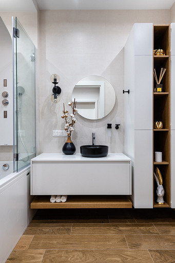 Из обычной двушки площадью 56 кв. м получилась квартира с большой кухней-гостиной, просторной ванной, изолированной спальней и гардеробной. В интерьере преобладают натуральные материалы и блеск, который придает роскоши и лоска. Читать далее...