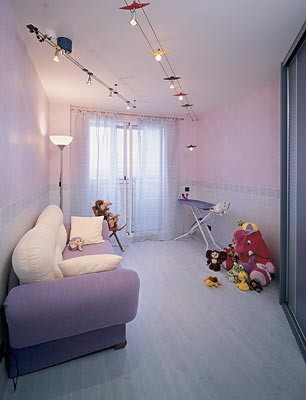 Детская замысливалась хозяевами как автономная, личная зона ребенка. Ее оформили максимально просто, не нагружая теми конструктивист-