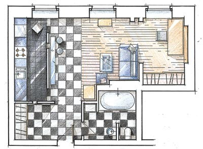 - Пол: плитка керамическая CERAMICHE ATLAS CONCORDE
