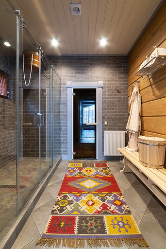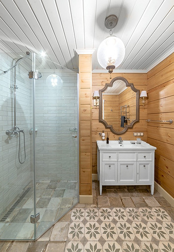 - Стены: лессирующий состав, плитка, керамогранит