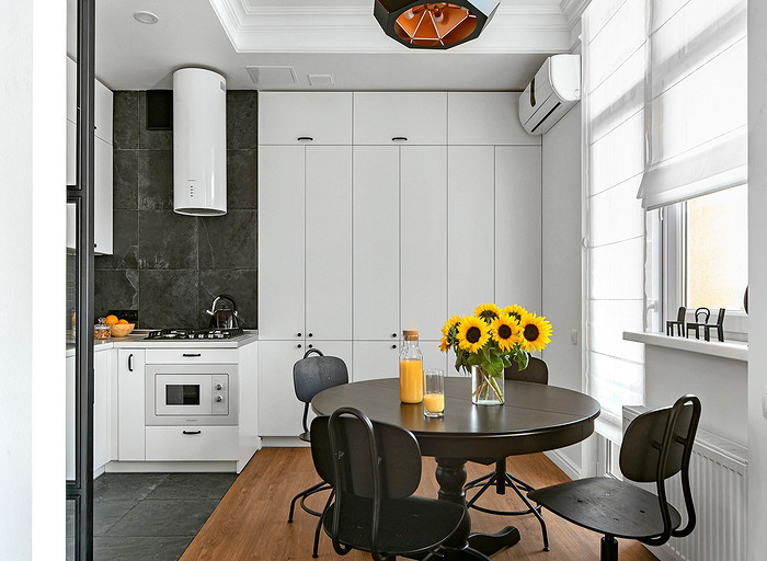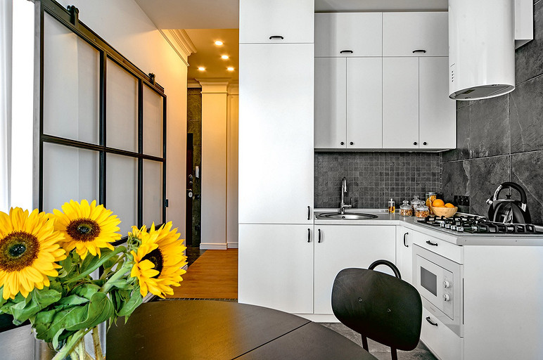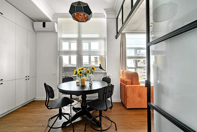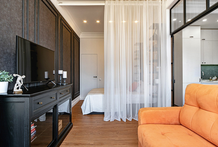 Продуманная перепланировка помогла дизайнеру обустроить в небольшой однокомнатной квартире все необходимые функциональные зоны — кухню, гостиную, спальню — и при этом улучшить инсоляцию обычно тёмных вспомогательных помещений — прихожей и коридора. Читать далее...
