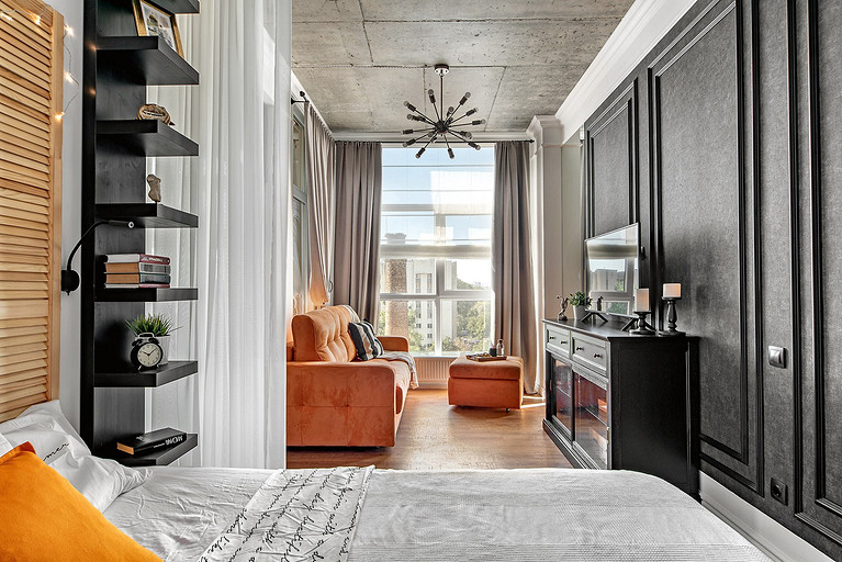 - Стены: краска, обои BN International, люстры, ST Luch, Loft it Loft