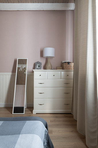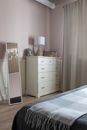 - Декор и текстиль: шторы «Леруа Мерлен», подушки и плед, рамки на стенах, салфетка плетеная, графин — ИКЕА, подсвечники «Стокманн»