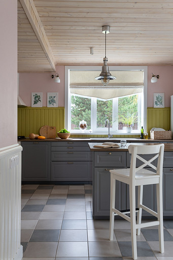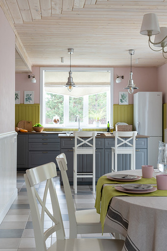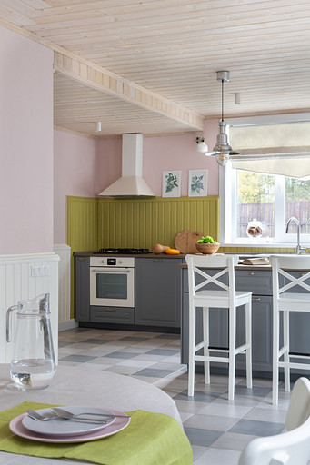 Дизайнеры оформили дом с применением недорогих отделочных материалов — вагонки, краски, керамогранита и ламината. Но добавили акцентных деталей и ярких цветов. Получилась эклектичная обстановка, подходящая для жизни семьи с двумя детьми. Читать далее...