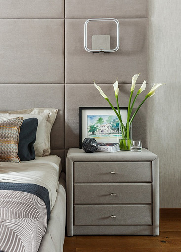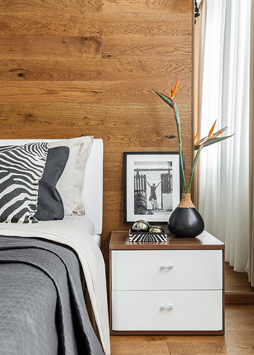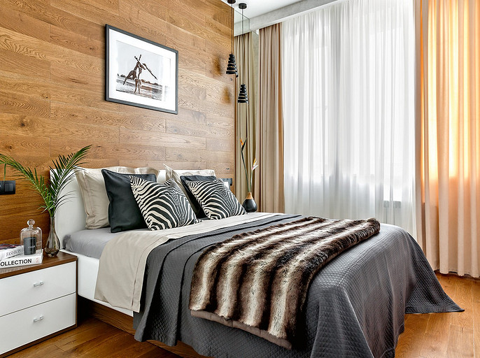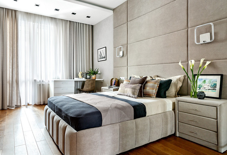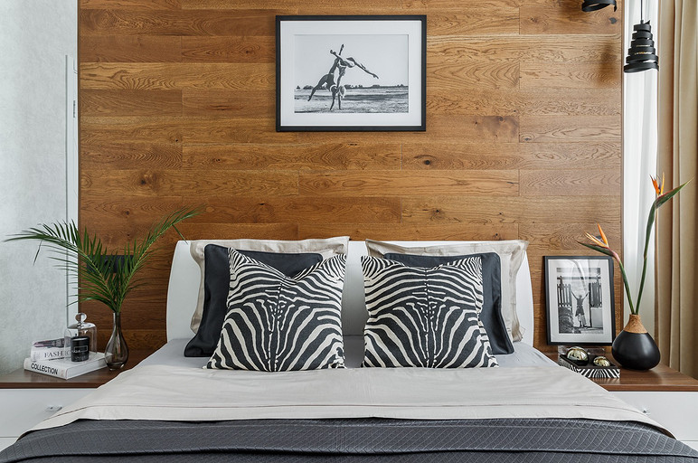 - Мебель: кровать и тумбы — на заказ по эскизам дизайнера