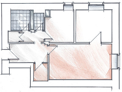 Плацдарм - двухкомнатная квартира общей площадью 51,54 м2 в «сталинском» доме. Главные «действующие лица» — стекло и свет. Читать далее...