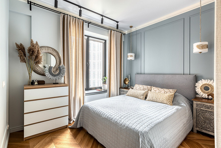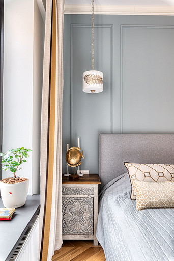 Благодаря смелому планировочному решению из стандартной двухкомнатной квартиры удалось сделать трехкомнатную с общей зоной — кухней-гостиной, кабинетом, санузлом, и приватными помещениями — спальней и ванной комнатой при спальне. Интерьер насыщен декором и предметами, которые владелица квартиры привезла из путешествий. Читать далее...
