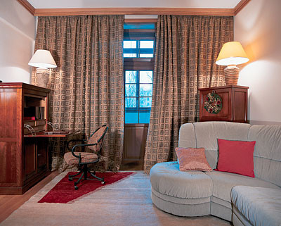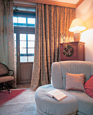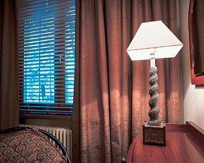 Мягкий приглушенный свет ламп под старинусоздает в гостиной ощущение уюта и покоя. Тяжелые шторы, подобно театральному занавесу, отделяют мир этого дома от шума и суеты большого города