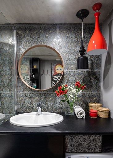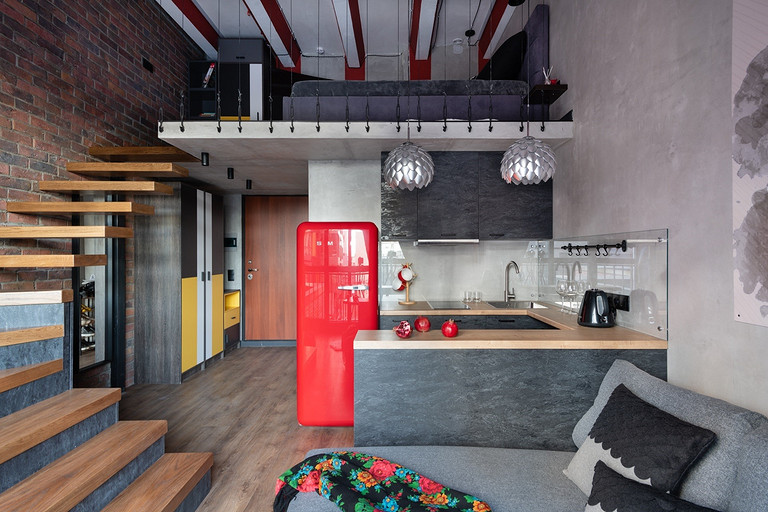 Квартира находится в ЖК Kleinhouse — дом в бывшей чаеразвесочной фабрике, построенной Романом Клейном в 1914 году, в самом центре Москвы в районе Басманный. Стиль здания и его местоположение определили эстетику интерьера — лофт с русскими мотивами. Читать далее...