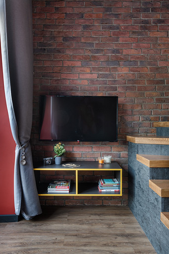- Стены: клинкерная плитка White hills Бремен Брик, краска Kansai Plascon, плинтус напольный Decomaster