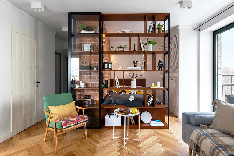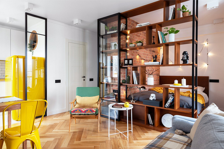 Типовая однушка 32 кв. м, которую превратили в светлую студию со спальней и гостиной