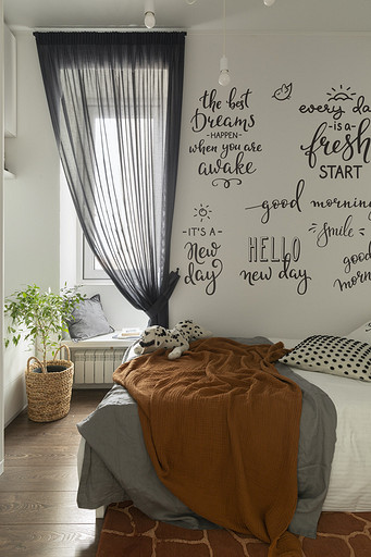 - Декор и текстиль: живопись — Тата Малова, текстиль H&M Home, ИКЕА, шторы — текстильная мастерская Виты Ковалевой Shtoro.ru