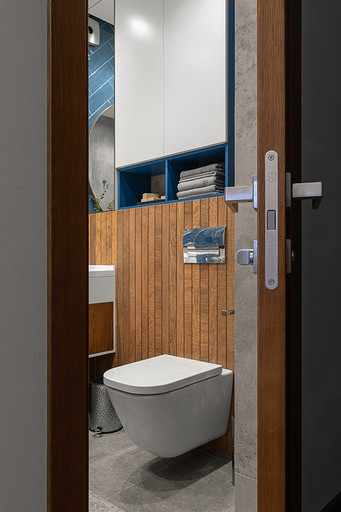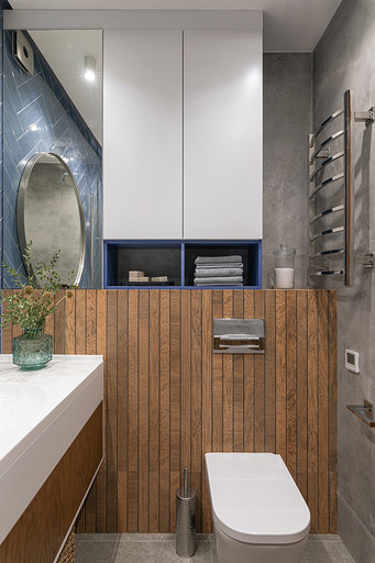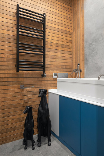 - Стены: керамогранит (под дерево) Porcelanosa, керамогранит (под бетон) Italon