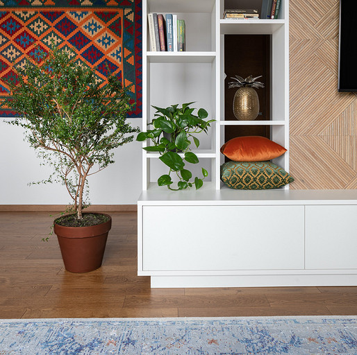 - Мебель: зона ТВ на заказ, Apex — местный производитель, обеденная зона ИКЕА