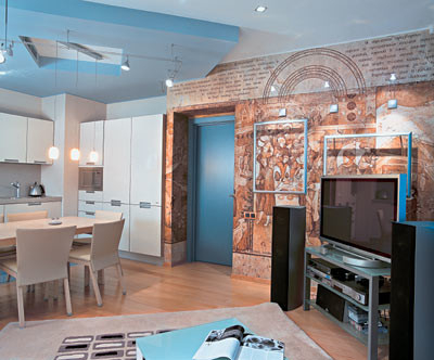 - Мебель: кухня FEBAL, стол, стулья Tonon, диван FRIGHETTO, стол журнальный Ligne Roset, стойка под телевизор SHROERS