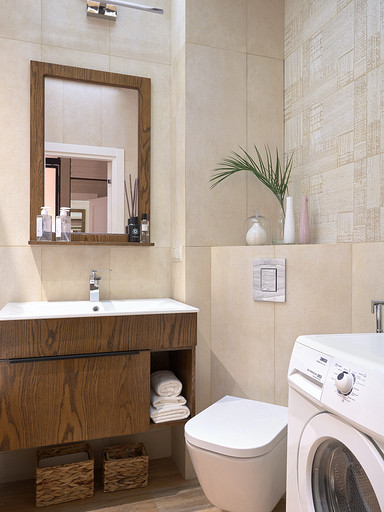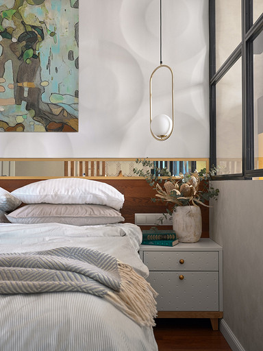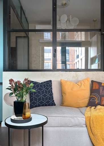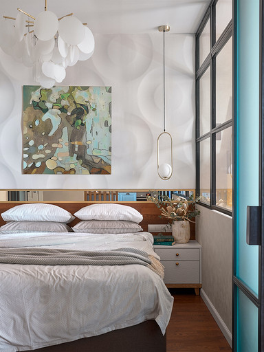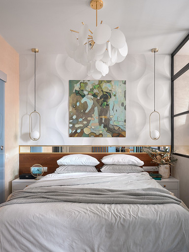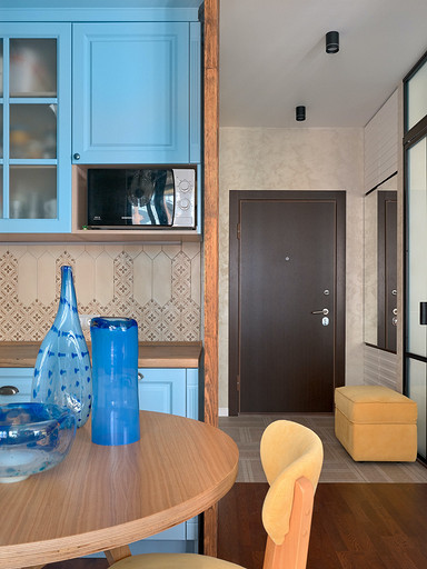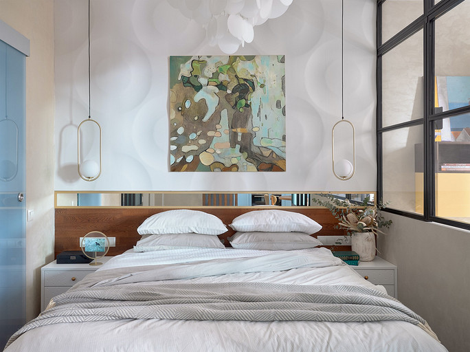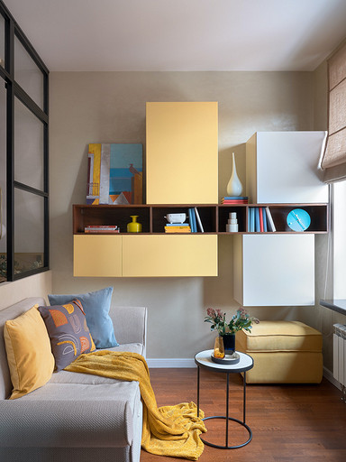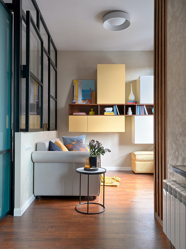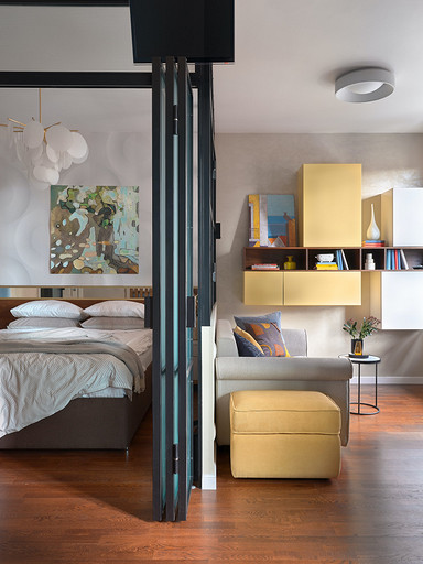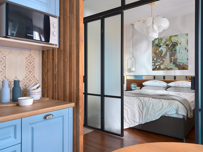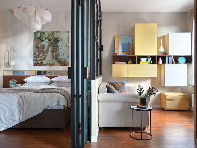 Солнечная и функциональная квартира площадью 35,7 кв. м со спальней, гостиной и гардеробной