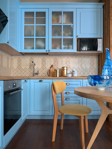 - Мебель: вся корпусная и мягкая мебель, стулья на кухне — под заказ в мастерской Borrador