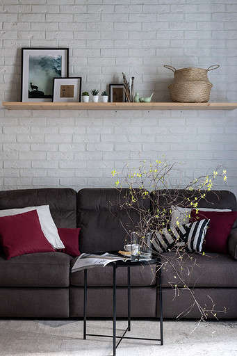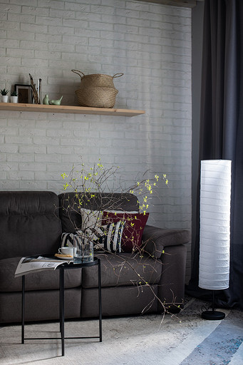 - Мебель: диван B&B, столик, стулья барные — ИКЕА