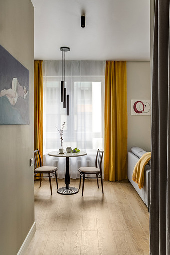 На маленькой площади архитекторы сумели выделить спальню и гостиную зоны, а также создать комфортный интерьер, который при желании легко преобразить и персонализировать. Читать далее...