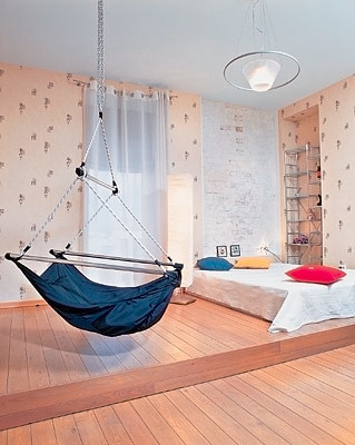 Гамак может стать любимым местом обитателей квартиры, ведь на нем можно качаться! Держат гамак закладные в потолке, специальный анкер и крепеж, рассчитанный на 300кг