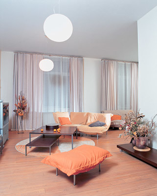 с Японией. Подушкообразные (пухлые) диваны и пуфики ярких, жизнерадостных цветов- типичные представители европейского дизайна