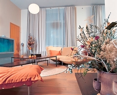 Интерьер квартиры сложно отнести к какому-либо определенному стилю. Низкая лаконичная мебель вызывает ассоциации