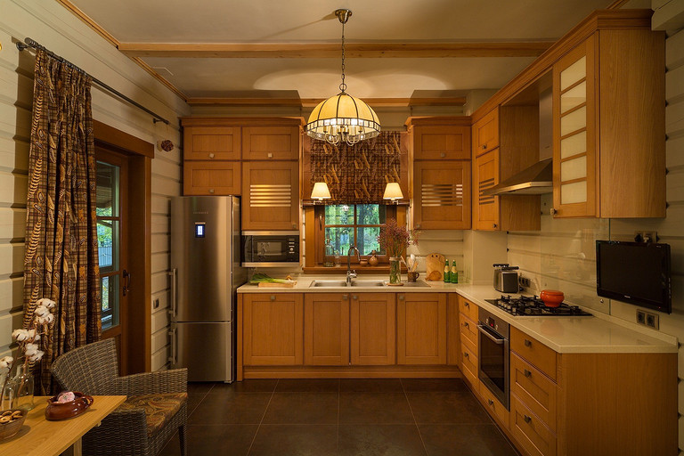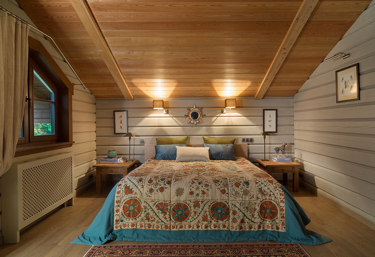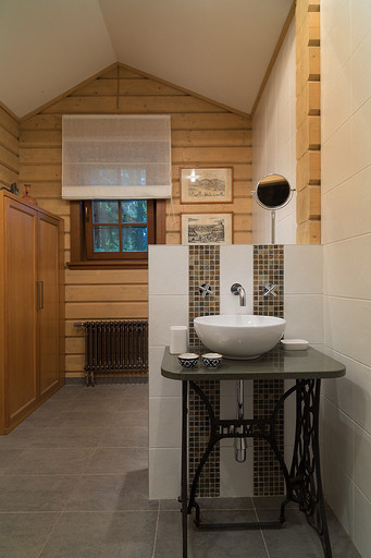 - Стены: клееный брус, тонированный составами Remmers (1 этаж, кроме кухни, 2 этаж, кроме хозяйской спальни), акриловая краска Little Greene (кухня и спальня)