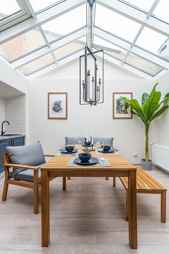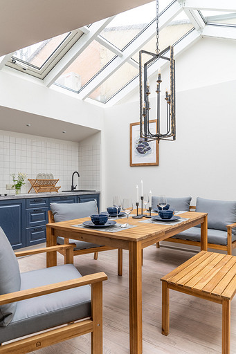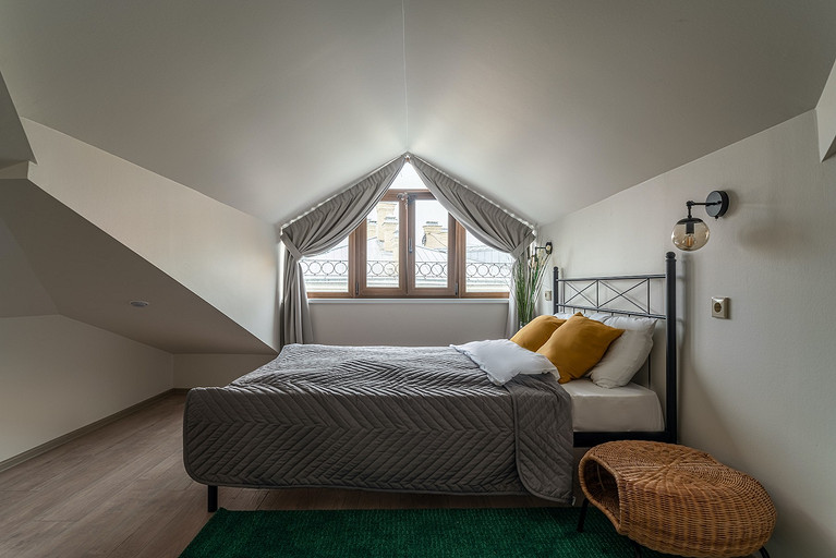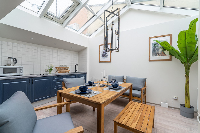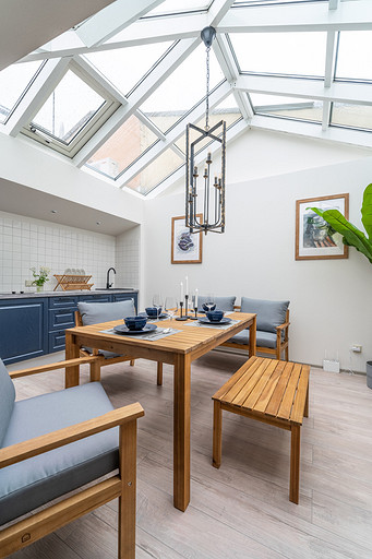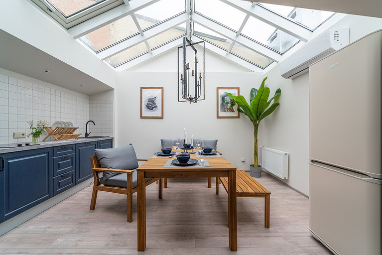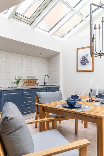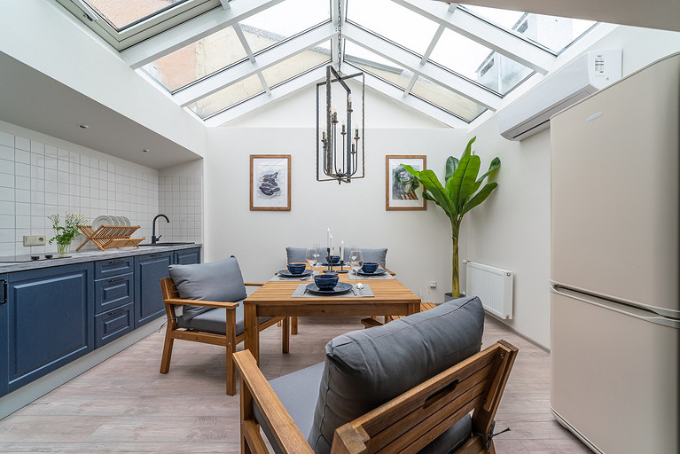 Квартира двухуровневая, но жилое помещение расположено в мансарде. Стеклянная крыша одной из комнат натолкнула дизайнера на создание квартиры-веранды с атмосферой загородного дома. Читать далее...