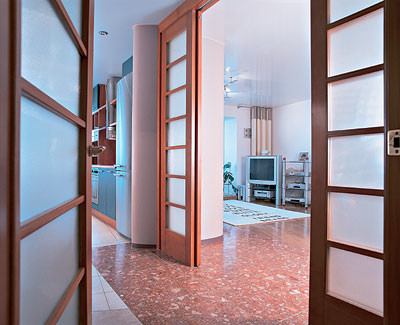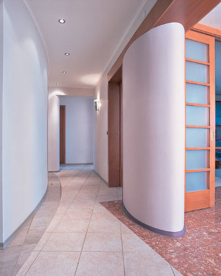 - Стены: штукатурка, шпаклевка Pufas, обои виниловые Erfurt