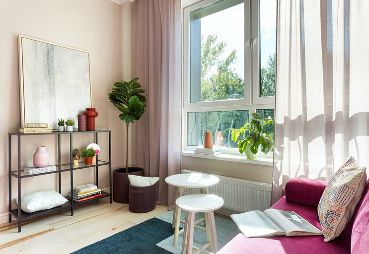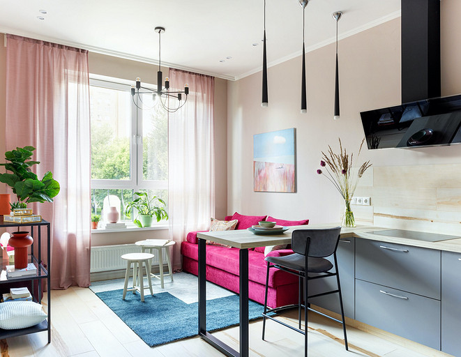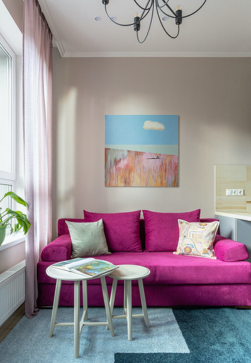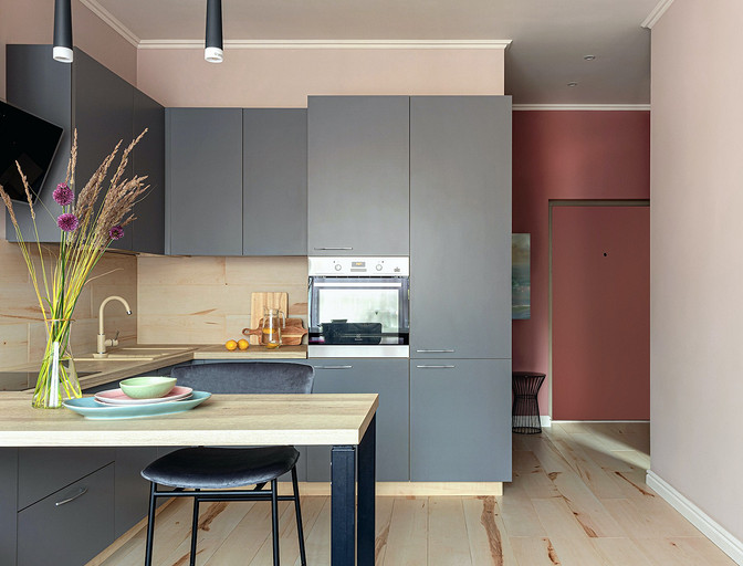 В этом интерьере цвет выходит на первый план. Спальня — нежно-зеленая, лоджия — изумрудная, прихожая — коралловая, а кухня-гостиная — пастельно-бежевая. Дизайнер мастерски поработала с цветом и создала интерьер для заказчицы, которая в свободное от работы время пишет картины. Читать далее...