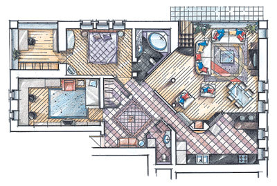 Трехкомнатная квартира (104,8 м2) с сюжетным развитием пространства. Проект завоевал первую премию на самарском конкурсе «Сезон интерьера». Читать далее...