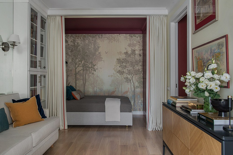 Архитекторы сделали перепланировку в двухкомнатной квартире, чтобы разместить два спальных места и гостиную зону и оформили интерьер в стиле английской классики с элементами ар-деко. Читать далее...