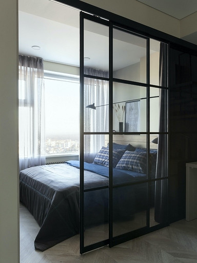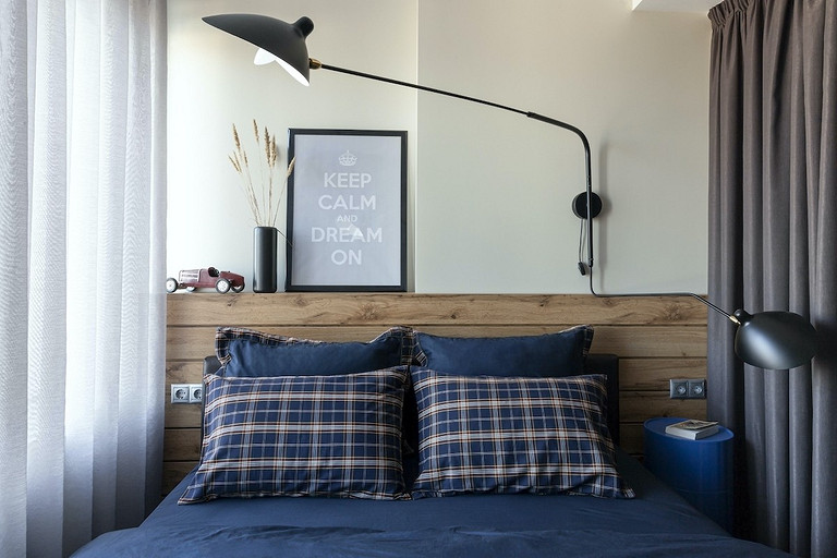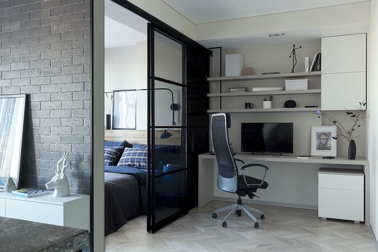 Аскетичная однушка для студента со спальней, кухней-гостиной и рабочим местом